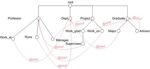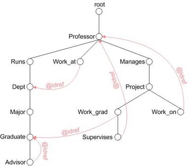 Where $b/@id = $a//supervises/@idref